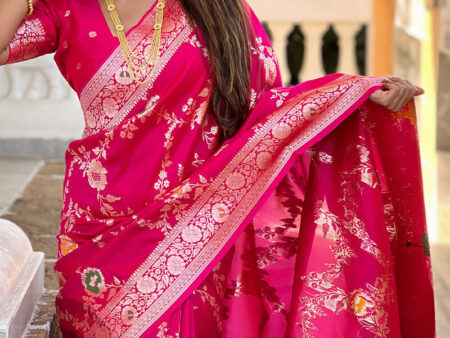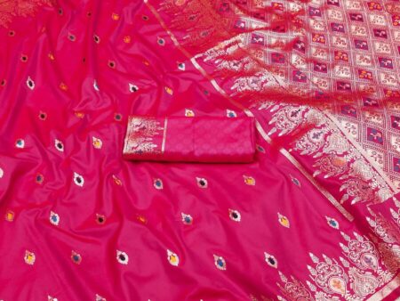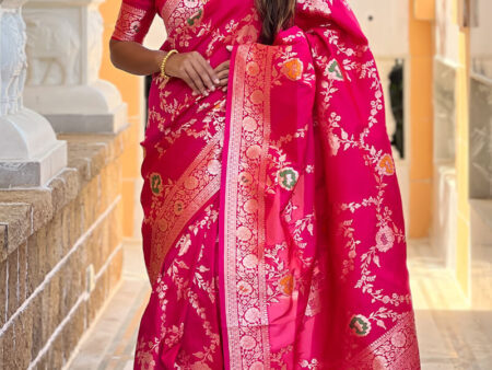 Adorable Dark Pink Soft Banarasi Silk Saree With Blissful Blouse Piece