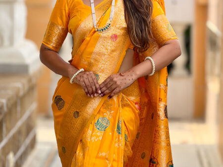 Admirable Yellow Soft Banarasi Silk Saree With Angelic Blouse Piece