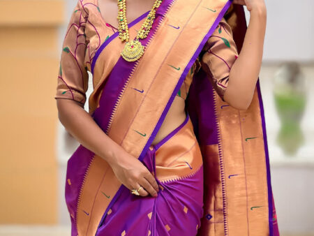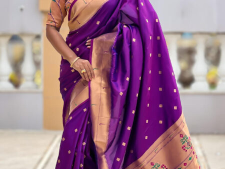 Ailurophile Purple Paithani Silk Saree With Incomparable Blouse Piece