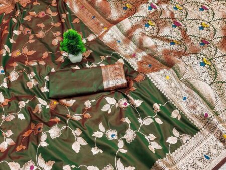 Adorable Green Pure Zari Weaving Banarasi Silk Saree With Conflate Blouse Piece