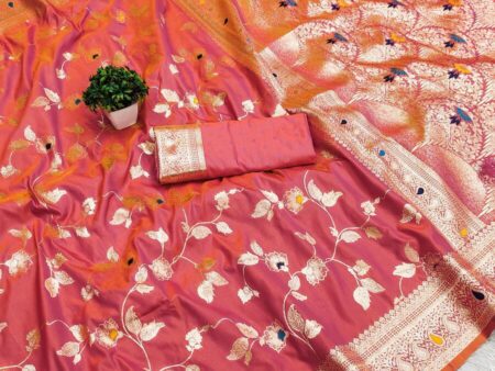 Ailurophile Peach Pure Zari Weaving Banarasi Silk Saree With Invaluable Blouse Piece