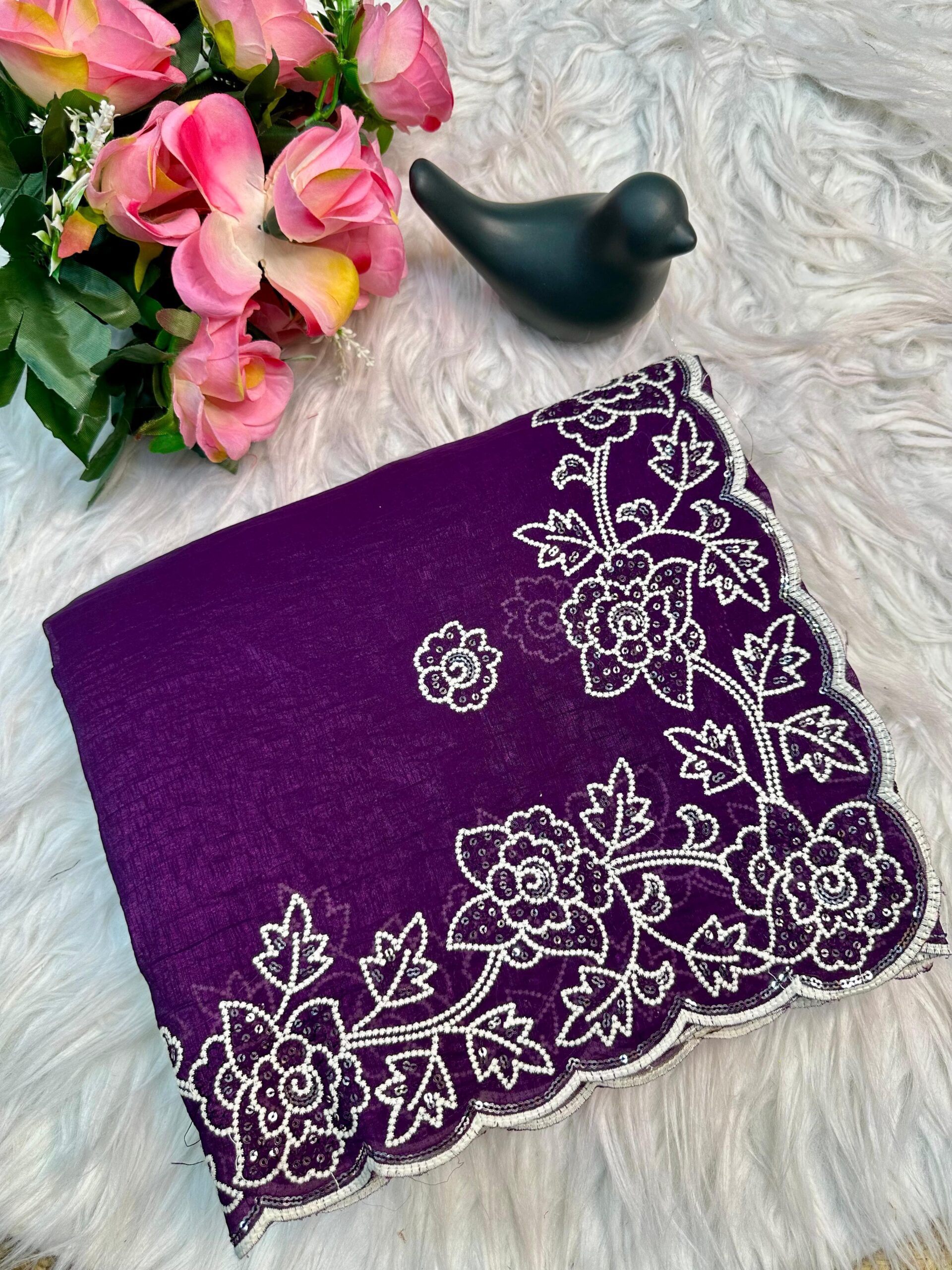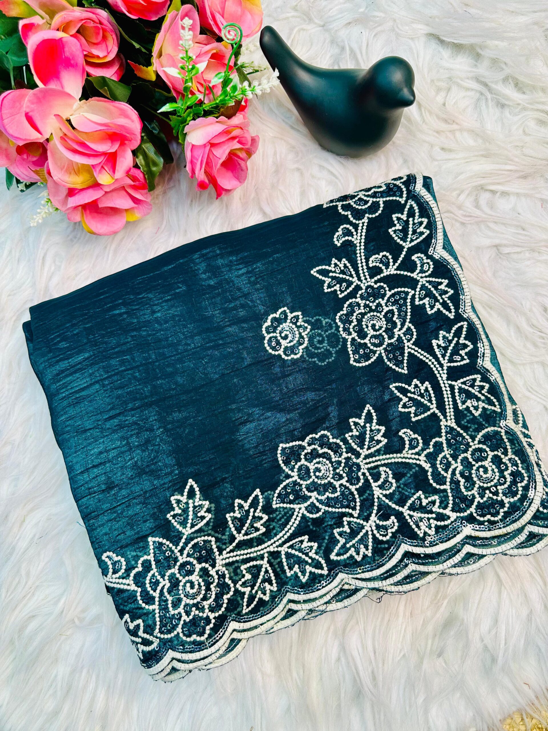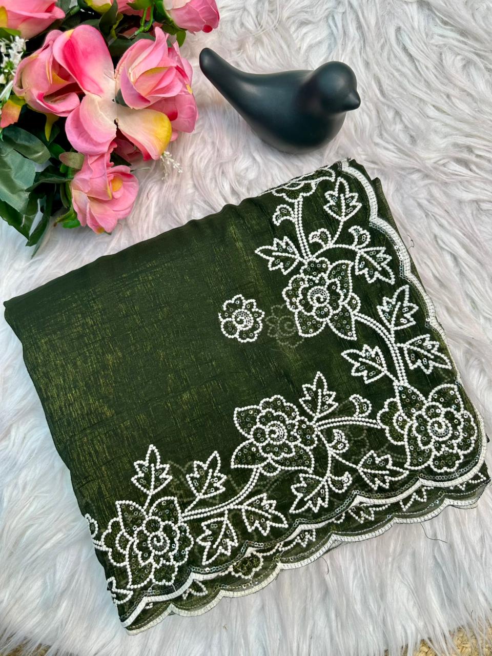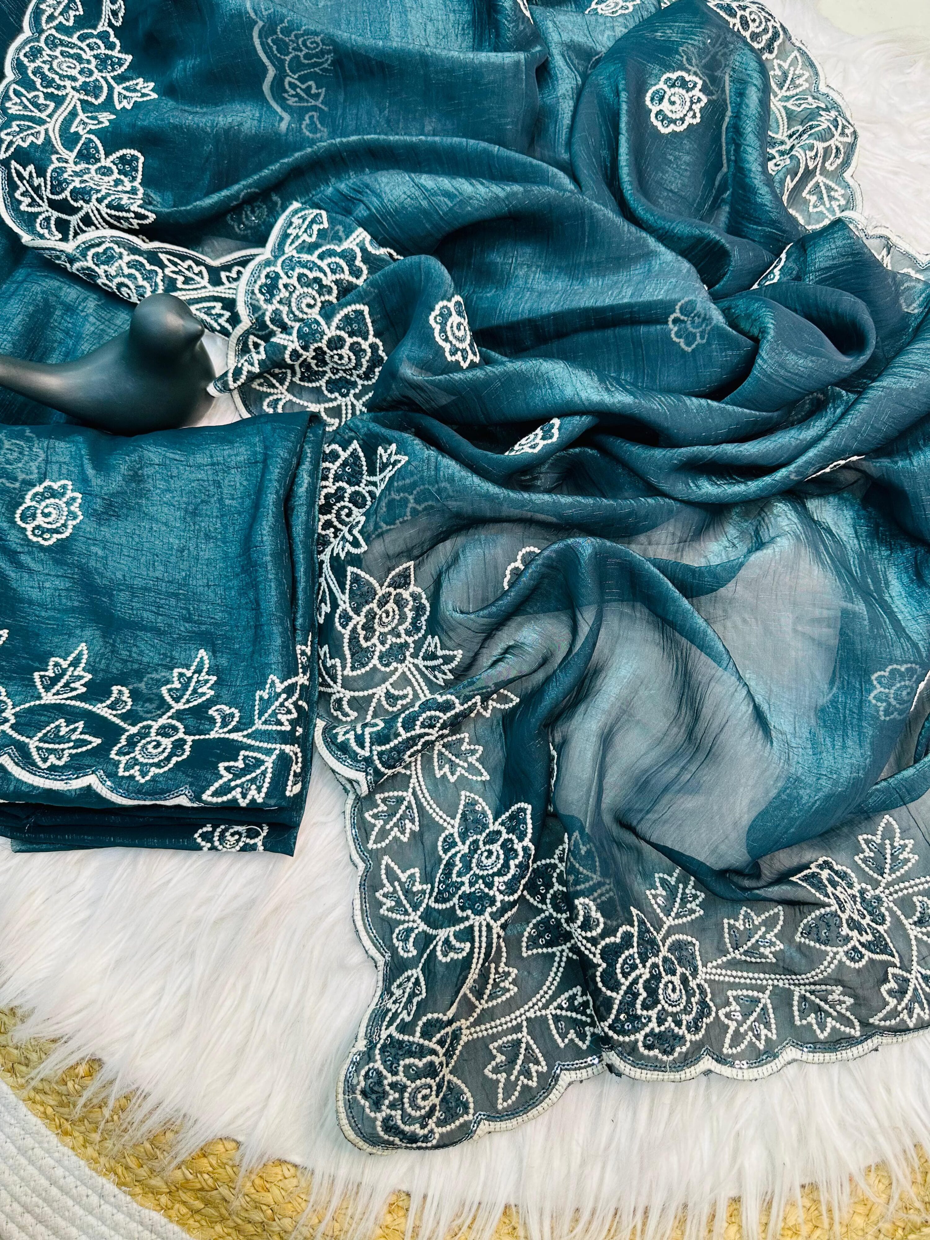 SAREE : Crunchy fabric with embroidery thread sequence work.