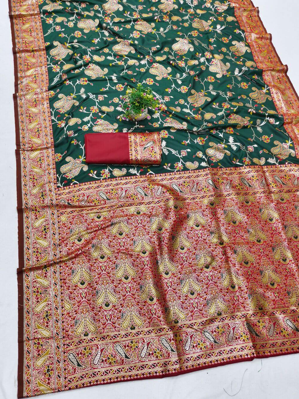 Dazzling Dark Green Pure Zari Weaving Banarasi Silk Saree With Inimitable Blouse Piece