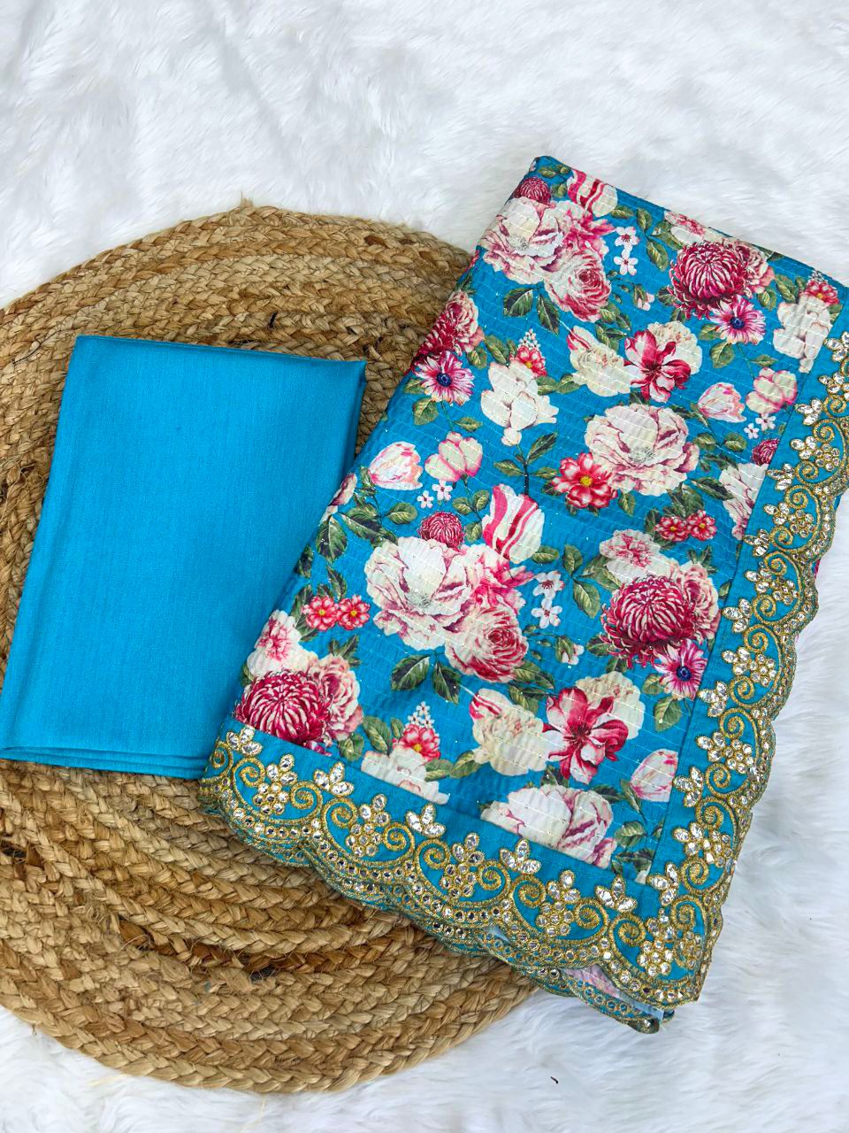 *Work*: Cro-Chet work with Digital Print of Floral Design and Gota patti with zari dori Embroidered Lace Border.