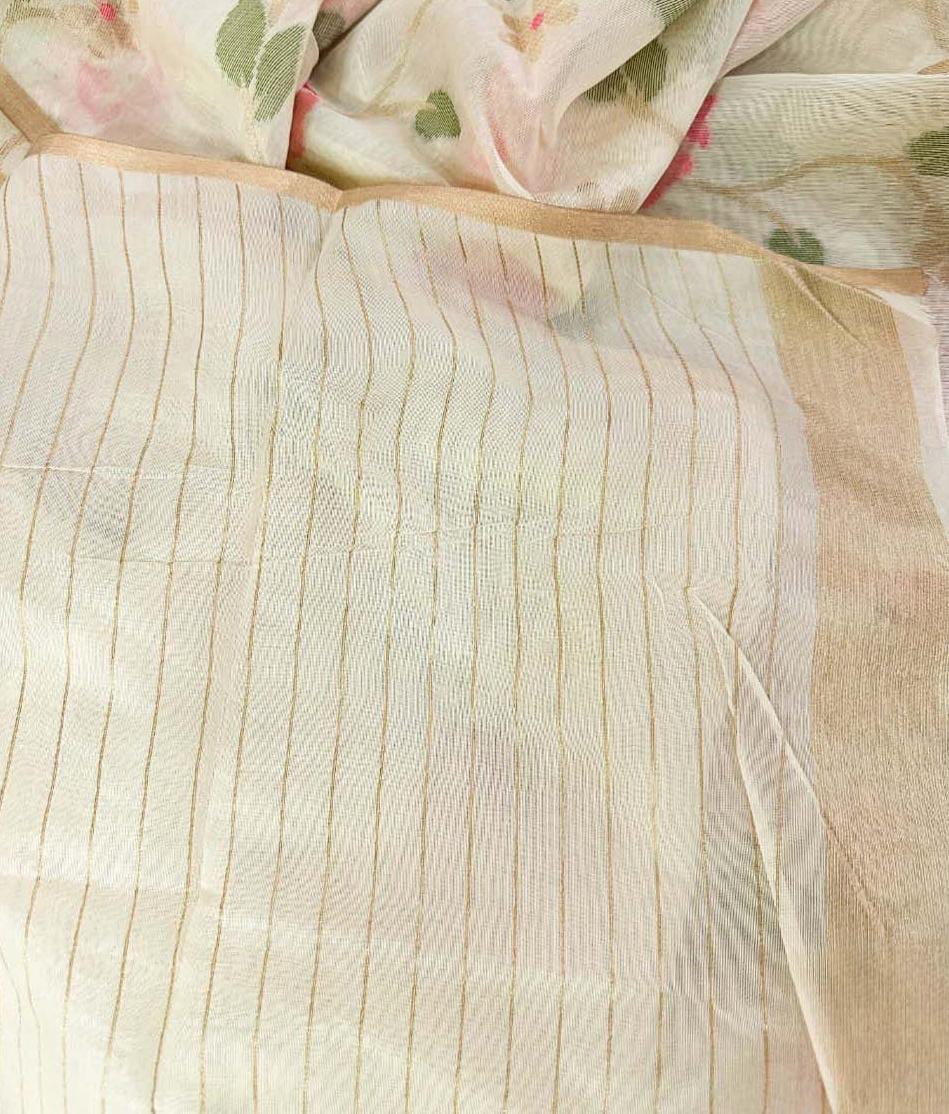Off white color simmer saree with full of embroidery