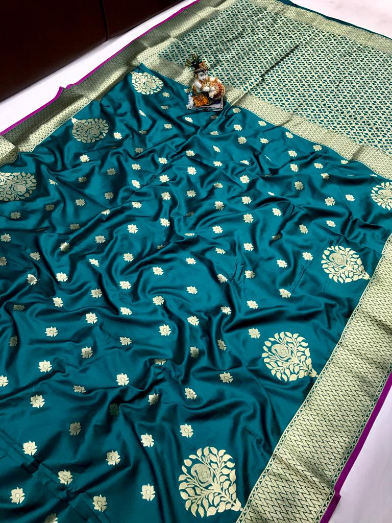 🧶Fabric :- Most unique Collection Lichi Silk saree weaving gold jari butti and nice border with motif & nice design of pallu.